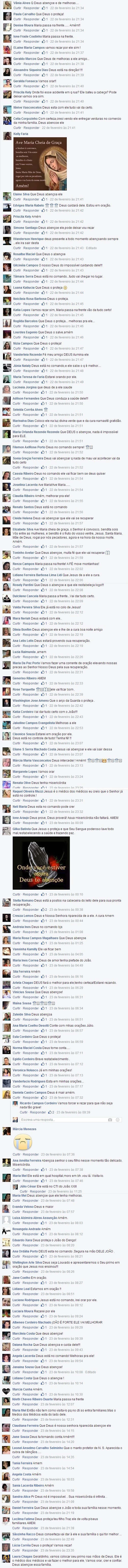 ESTOU PEDINDO A TODOS OS MEUS FAMILIARES E AMIGOS AKI DO FACE PARA QUE REZEM UMA AVE MARIA, PEDINDO A RECUPERAÇÃO DO MEU QUERIDO PRIMO JOÃO DO DENGO, QUE SE ENCONTRA INTERNADO EM BH EM ESTADO QUE INSPIRA MTO CUIDADO. SEGUNDO O SEU FILHO, DANIEL, COM QUEM FALEI HÁ 01 HORA ATRÁS - O MEU PRIMO ESTÁ EM ESTADO DE COMA. MAS, PARA DEUS NADA É IMPOSSÍVEL. AMÉM. ( JOÃO ESTAVA DE MOTO E SE ENVOLVEU EM UM PEQUENO ACIDENTE COM OUTRA MOTO. ELE N TEVE APARENTEMENTE NADA. TANTO QUE FOIU AO BANCO MAIS TARDE NO MESMO DIA... NO DIA SEGUINTE(SÁBADO PASSADO) COMEÇOU A PASSAR MAL E FOI LEVADO PARA BH, ONDE SE ENCONTRA.